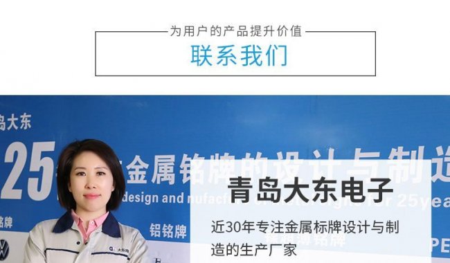 至2020年,青島大東公司已踏實走過26個春秋,公司擁有電鍍、蝕刻、氧化、真空鍍、激光、噴漆等各種表面處理產(chǎn)線,可進行標(biāo)牌,其他金屬物以及素材多樣的制造加工工程,是集研發(fā)、設(shè)計、生產(chǎn)、服務(wù)的一站式企業(yè)。